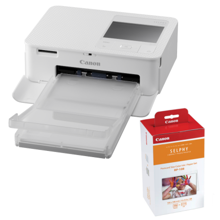 Canon SELPHY CP1500 Compact Photo Printer (White) with RP-108 Ink/Paper Set 1