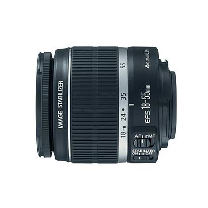 In response to demands of photographers, the Canon EF-S 18-55mm f/3.5-5.6 IS Lens is designed with Canon's Optical Image Stabilizer technology while retaining the compactness and lightness of previous models. Its stabilization allows sharp hand-held shots at shutter speeds up to four stops slower than otherwise possible. It consists of 11 elements in 9 groups and uses an Aspherical lens element to correct aberration for excellent image quality throughout the zoom range and a circular aperture for exquisite rendering of out-of-focus backgrounds. Without a lot of size, weight or cost, this lens expands picture-taking possibilities any time slow shutter speeds are needed.