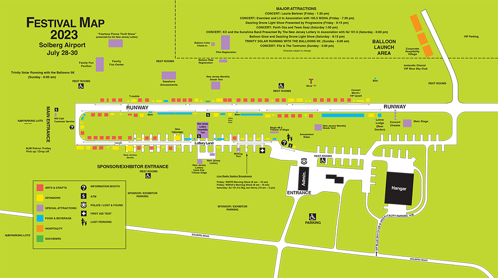 The New Jersey Lottery Festival of Ballooning is one of the largest summertime festivals in North America that features hot air balloons from all over the world. It's held annually at the Solberg Airport in Readington, NJ and attracts guests from all over for not only the hot air balloons, but also the music and other family entertainment all weekend.