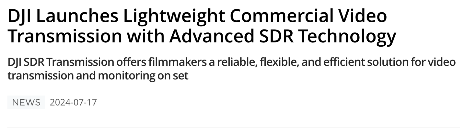 "Since the beginning, we intended our DJI PRO line to be a comprehensive and reliable ecosystem of drones, cameras, and creator tools for both professional filmmakers in the industry and content creators to aspiring storytellers," says Paul Pan, Senior Product Line Manager at DJI. "Listening closely to user feedback, we continue to expand our offerings in creative camera technologies with careful attention to what's needed. Our new DJI SDR Transmission delivers the same film and television-level image transmission quality but at a more accessible price point for more upcoming filmmakers."