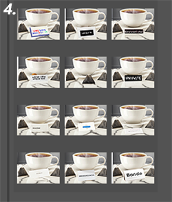 4. This image shows the desperate attempt to get the AI to create a teabox or a sign, or box, in front of the teacup which could have been used as a space for a logo or text promo. Unfortunately the AI has it's own "language" and cannot spell real words (quite yet) though it will be curious if and when it will be able to do so.