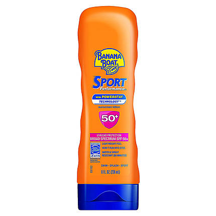 The Banana Boat Suntan Sunscreen SPF50 8 oz Lotion is a must-have for outdoor-sports enthusiasts. It comes with an SPF 50 formula that ensures water- and sweat-resistant protection for 80 minutes. This quick-absorbing, non-greasy lotion is highly recommended by the Skin Cancer Foundation, as it also protects your skin from the harmful UV rays. Furthermore, this sun-tested lotion does not run into the eyes.