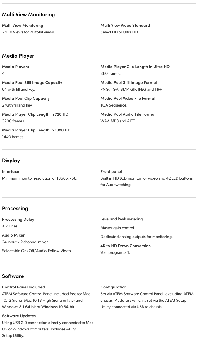 Get one of the world’s most compact and advanced switchers with the new ATEM 4 M/E Broadcast Studio 4K. You get an incredibly high performance live production switcher designed to work with the latest formats and high frame rates, all the way up to Ultra HD 2160p59.94! You get 16 next generation ATEM Advanced Chroma Keyers with 4 per M/E, perfect for advanced work and virtual sets. As the most advanced ATEM switcher, this model also includes the latest technology and features such as 2 Ultra HD multi viewers, full 2D DVE, built in SuperSource compositing engine with 4 picture in picture DVE's, full re-synchronization on each 12G-SDI input and much more! The multi rate 12G-SDI connections automatically switch between all HD and Ultra HD formats up to 2160p59.94 with a single BNC cable! Even if you're not working in Ultra HD now, the ATEM 4 M/E Broadcast Studio 4K has all the power and features for the highest end live production work, while being Ultra HD ready the instant you need it!