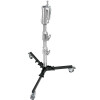 A versatile steel column roller stand with braked wheels and a sliding leg allows you to get your lights mobile in the studio or on location with ease and convenience. Supports up to 66lbs and features a chrome plated steel tube and a spring-loaded sliding arm which can be mounted with a lighting fixture or anything with baby pin/receiver. The height of the sliding arm can be quickly adjusted with only one hand from floor level to the top of column. The fold-away base with wheels can be removed easily to facilitate storage or transport.