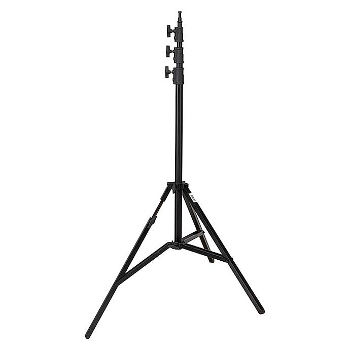 Mount accessories weighing 22 lbs easily by using the Kupo Baby Kit Stand with Square Legs (13-Foot). Besides the square legs, the stand's welded aluminum stud also offers immense stability. Moreover, its leveling leg comes in handy for keeping the stand firmly placed on uneven surfaces. This stand is made of aluminum and comes with metal knobs and locking collars.