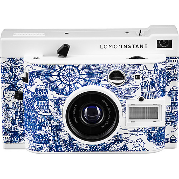 The KristopherH-illustrated Explorer Edition Lomo'Instant from Lomography is an INSTAX Mini-format camera. The built-in 27mm equivalent prime lens offers a wide-angle field of view and the manual focus operation captures subjects as close as 1.3' away. Its stylish exterior is complemented by both automatic and bulb shooting modes for controlling your exposure, along with the ability to produce unlimited multiple exposures for creative effects.