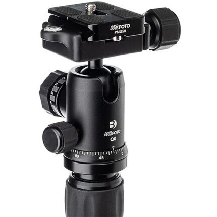 The Q0 ballhead uses an Arca-Swiss style quick release plate. Ideal for supporting smartphones, tablets, point & shoot, mirrorless, micro 4/3 and DSLR cameras with shorter lenses, the BackPacker can support up to 8.8 lb. Item Includes: BackPacker Tripod, Q0 Ballhead, PU50 Camera Plate and Carry Case with Shoulder Strap.