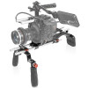 Add accessories and handheld functionality to your Canon EOS C500 Mark II camera with this Pro Shoulder Rig Kit from SHAPE. This kit includes a shoulder mount baseplate with 15mm rod system, a form fitting cage with Arri rosette, a rosette handle with black push-button, and a follow focus pro. The baseplate includes an integrated shoulder mount that allows you to convert your tripod-mounted camera into a handheld shoulder rig. The bottom of the cage attaches to the rear of the camera to support it on the baseplate. The 15mm rods allow you to mount additional accessories like a matte box and follow focus. The push-button handle attaches to the baseplate and can rotate using the rosette joints for the most comfortable position.