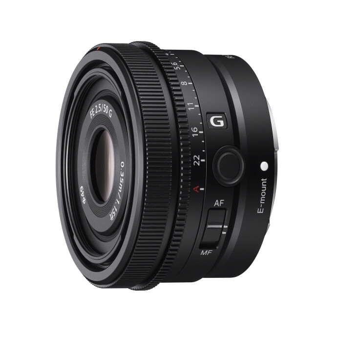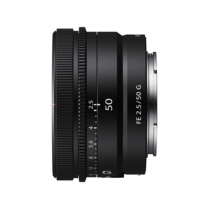 The ultra-compact FE 50mm F2.5 G lens measures 68mm diameter x 45mm and weighs in at only 174g. This makes it ideal for both APS-C as well as full-frame camera users. Its ultra-compact size and light weight balances well on smaller APS-C format bodies, providing a very useful mid to telephoto focal length of 75mm (full-frame format equivalent). This super small lens is also ideal for full-frame users wanting a standard 50mm field of view who prize compact size and weight to reduce their load, especially for those photographers and videographers who travel a lot.